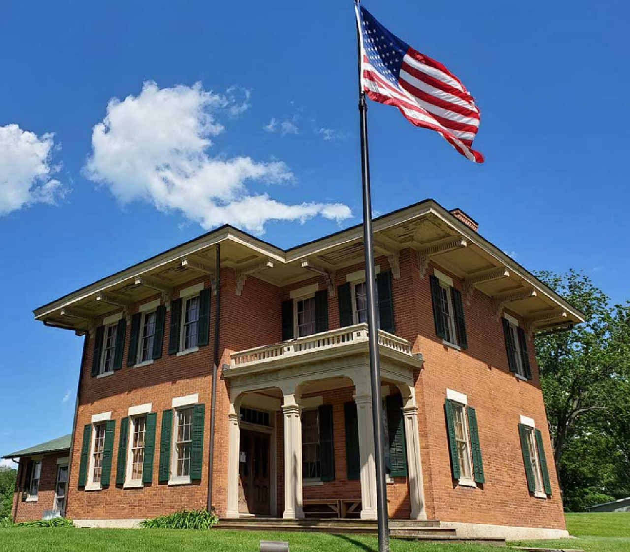The Ulysses S. Grant Home in Galena, Illinois is the former home of Ulysses S. Grant, the Civil War general and later the 18th president of the United States. The brick house, which was designed by William Dennison, had been constructed in 1860 for former City Clerk Alexander J. Jackson. Thomas B. Hughlett, on behalf of only a small group of local Republicans (including Elihu B. Washburne), purchased the house for $2,500 in June 1865 ($48,186.35 in 2024) and presented it to Grant two months later. The house is typical of the Italianate style, which is characterized by well defined rectilinear shapes, projecting eaves supported by brackets, low pitched roof, and balustraded balconies over covered porches.Thomas B. Hughlett, on behalf of only a small group of local Republicans (including Elihu B. Washburne), purchased the house for $2,500 in June 1865 and presented it to Grant two months later. The house is typical of the Italianate style, which is characterized by well defined rectilinear shapes, projecting eaves supported by brackets, low pitched roof, and balustraded balconies over covered porches.